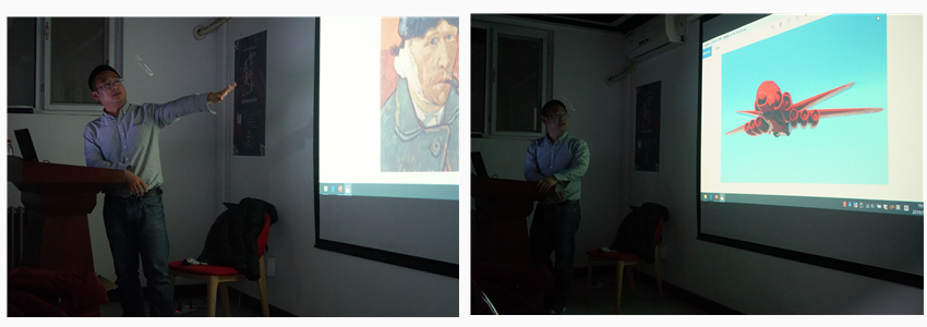 其次,黄教授通过照片和视频的形式为大家带来了一场绝无仅有的视觉盛宴,从为中国版画做出巨大贡献的鲁迅先生出发,同学们先后欣赏了日本浮世绘风格的版画,法国,西班牙等国家不同时期的版画形式及发展历程,透过画背后的故事和画家的身份从中可以体会到版画家意在通过颜色表达所思所想,讴歌生命,借助刻版来追求其心理的表达;