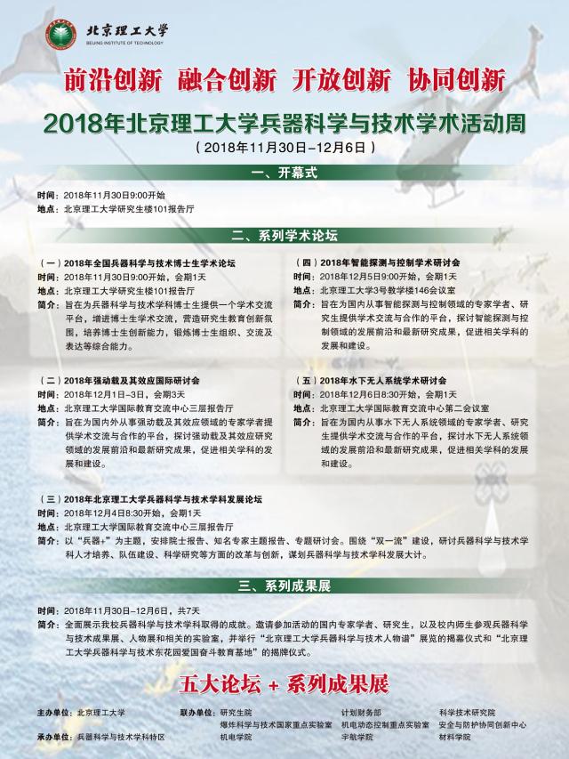 2018年北京理工大学兵器科学与技术学术活动周公告
