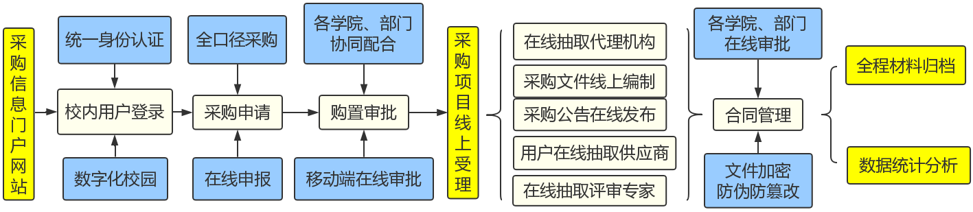 为深入推进我校采购管理信息化建设,计划财务部以“服务好教职工,助力教学科研”为宗旨,于2019年3月启动了“采购管理系统”的建设工作。经过为期半年的开发测试,系统已具备运行条件,于2019年9月10日正式上线试运行。
