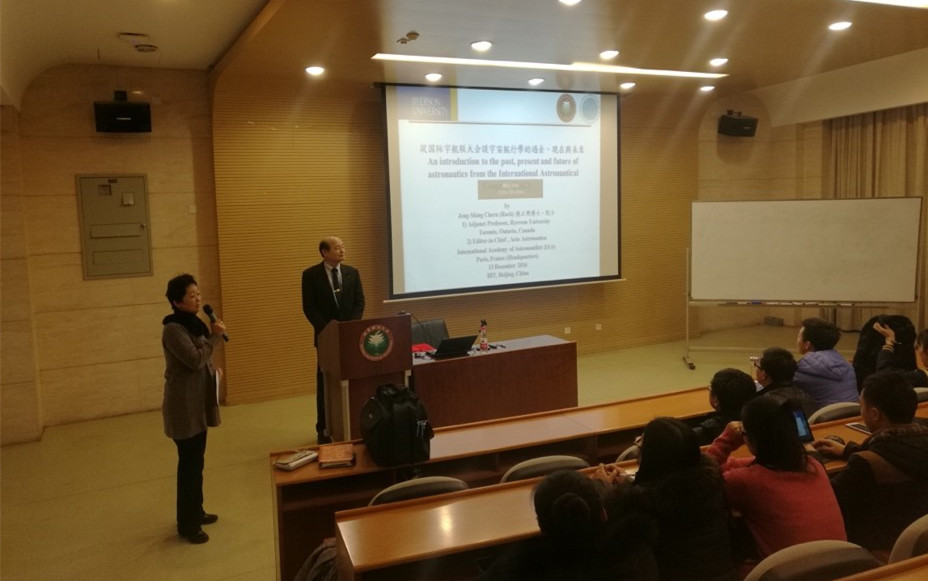 应北京理工大学宇航学院张景瑞教授的邀请,国际宇航科学院(IAA)院士、Acta Astronautica期刊的主编Jeng-Shing Chern教授于2016年12月12日-16日访问北京理工大学,并于13日上午为我校师生做了关于“从国际宇航联大会谈宇宙航行学的过去、现在与未来”和“Acta Astronautica期刊主编谈SCI投稿要诀”两个内容的学术报告。