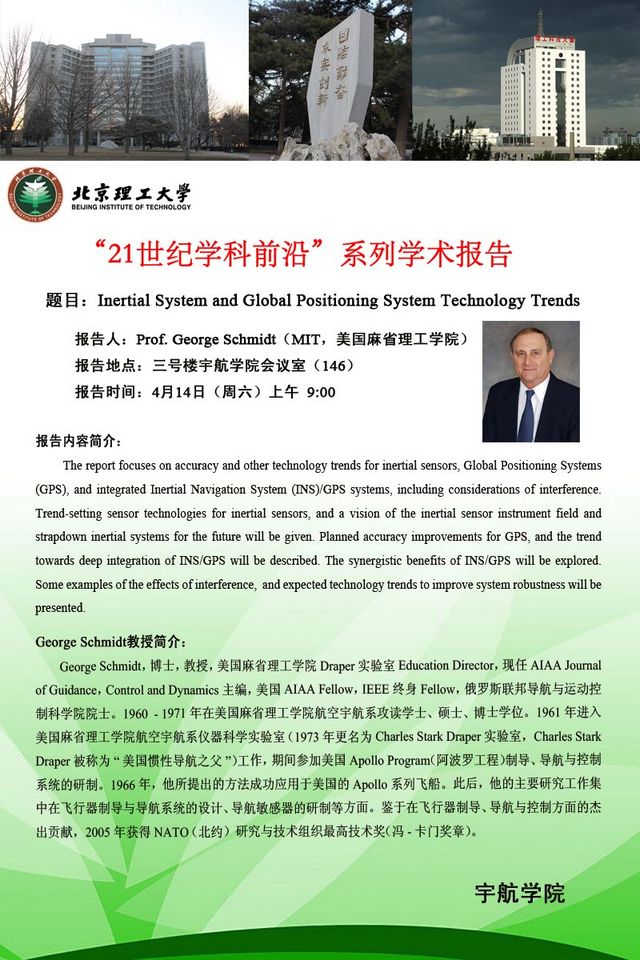 宇航学院4月14日“21世纪学科前沿”学术报告预告