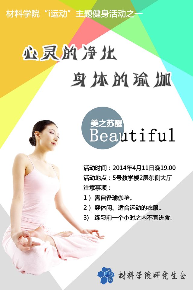 材料学院“i运动”主题健身活动之“心灵的净化、身体的瑜伽”活动预告