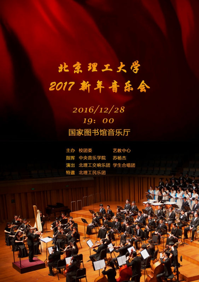 北京理工大学“2017新年音乐会”将于12月28日(星期三)19:00在国家图书馆音乐厅举行,欢迎大家欣赏。