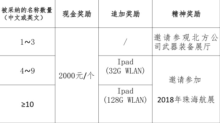 1.北方公司适时确定名称最终方案,被采纳的方案作者将获得奖励。具体如下: