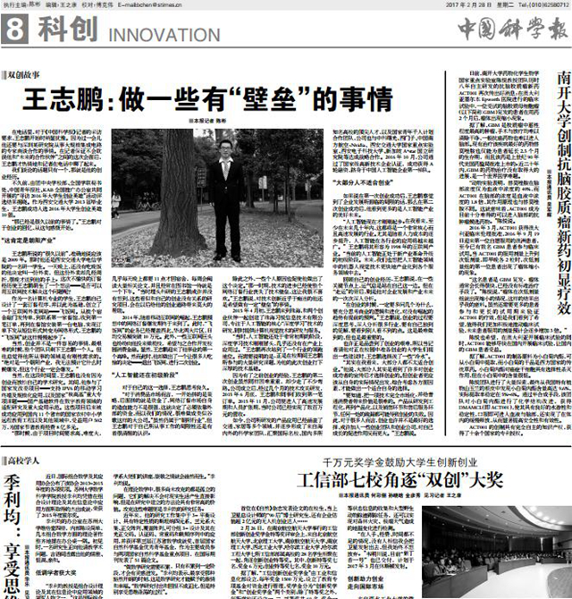 让人惊讶的是,团队负责人谷敏骏是一名文科生,从一名科技“门外汉”到创新达人,为实现自己的“双创”梦想,他自学了数据分析、互联网应用、云计算等相关知识。“科技能服务于国家,这就是我们青年的时代担当。”谷敏骏说。
