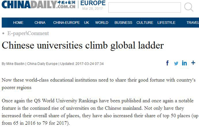 【China Daily】Chinese Universities Climb Global Ladder