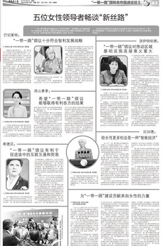 5月14日,国家主席习近平在北京出席“一带一路”国际合作高峰论坛开幕式,并发表题为《携手推进“一带一路”建设》的主旨演讲。习近平主席的精彩演讲,在各界女性中引发强烈反响,大家纷纷表示,要抢抓“一带一路”建设新机遇,体现新的更大担当,作出新的更大贡献。