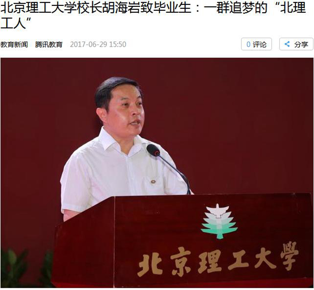 【腾讯教育】北京理工大学校长胡海岩致毕业生:一群追梦的“北理工人”
