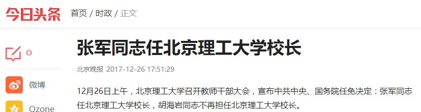 【今日头条】张军同志任北京理工大学校长