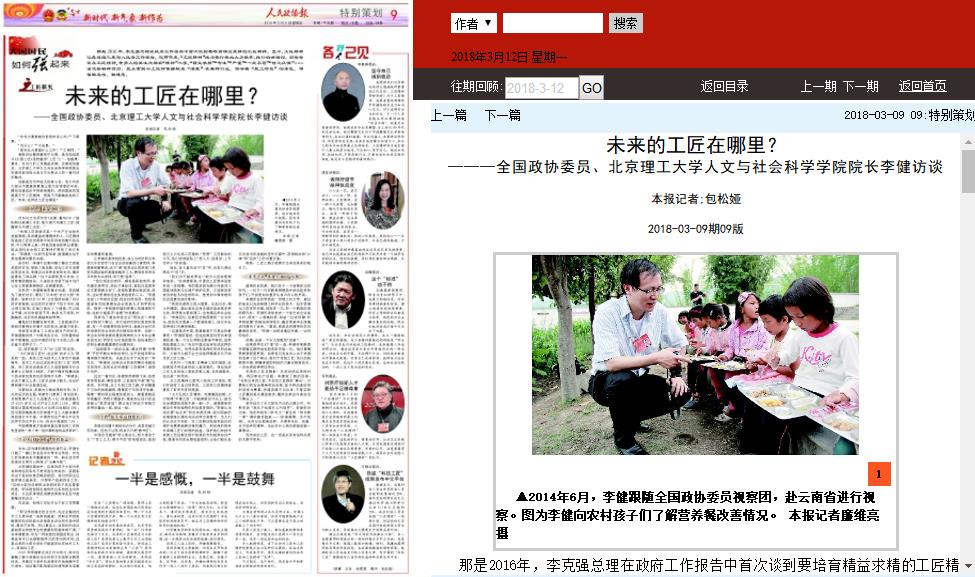 【中国政协网】未来的工匠在哪里?——全国政协委员、北京理工大学人文与社会科学学院院长李健访谈