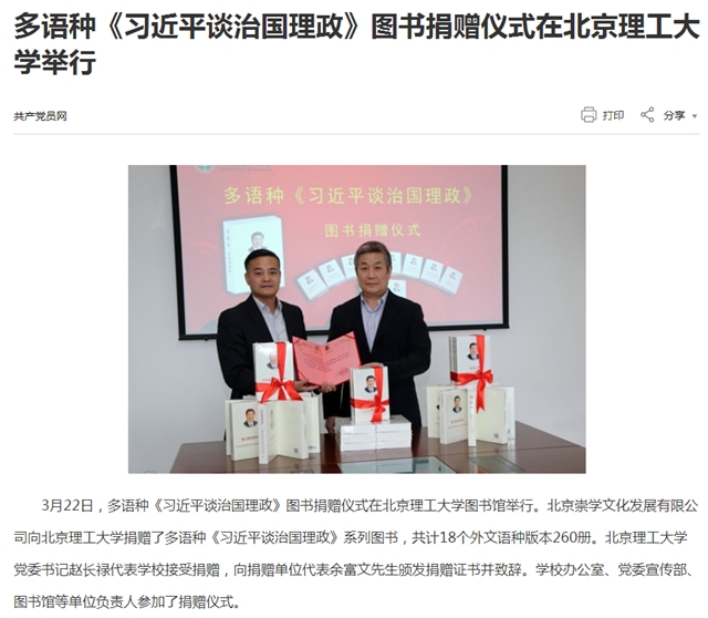 【共产党员网】多语种《习近平谈治国理政》图书捐赠仪式在北京理工大学举行