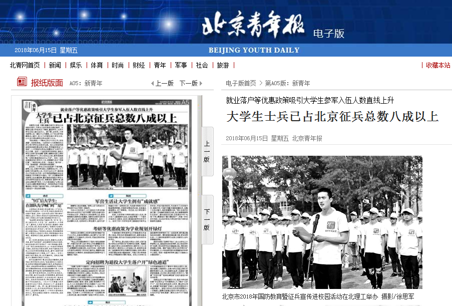 【北京青年报】北理工教师就“大学生参军入伍人数直线上升 ”发表观点