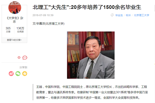 【《大学生》杂志】北理工“大先生”:20多年培养了1500余名毕业生