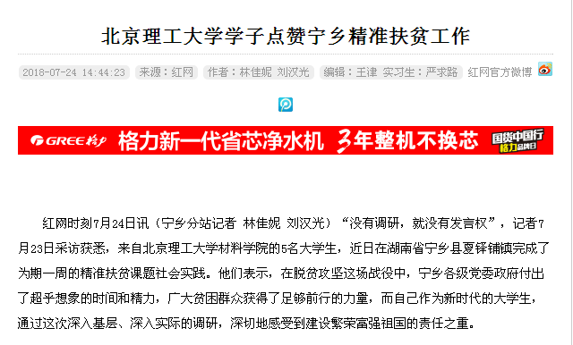 【红网】北京理工大学学子点赞宁乡精准扶贫工作