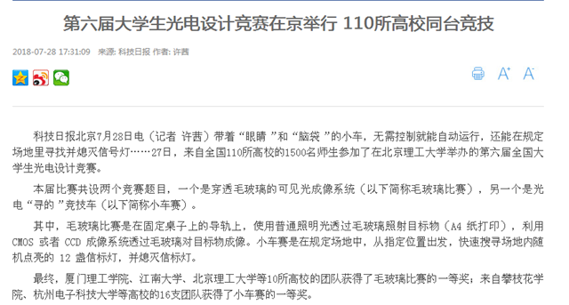 【科技日报】第六届大学生光电设计竞赛在北京理工大学举行 110所高校同台竞技