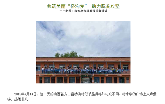 【科学新闻】共筑美丽“桥沟梦” 助力脱贫攻坚——北理工探索高校精准扶贫新模式