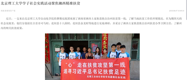 原文标题:北京理工大学学子社会实践活动聚焦湘西精准扶贫