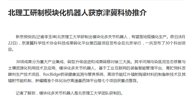 【新京报】北理工研制模块化机器人获京津冀科协推介