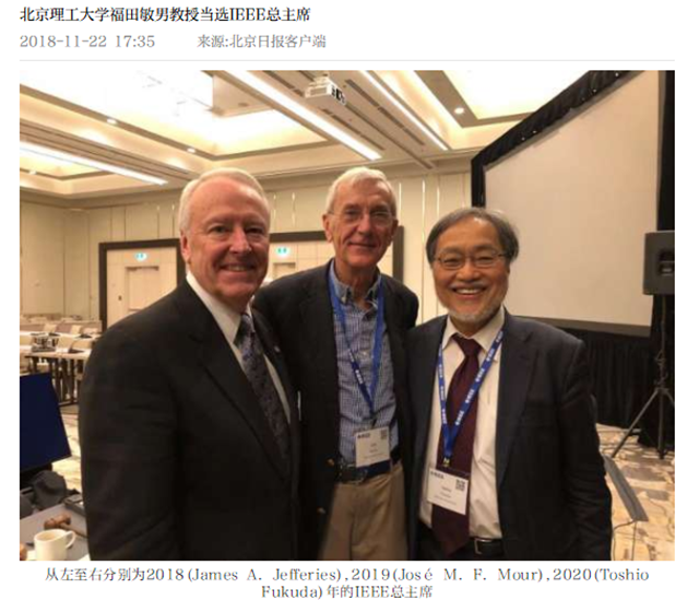 【北京日报客户端】北京理工大学福田敏男教授当选IEEE总主席