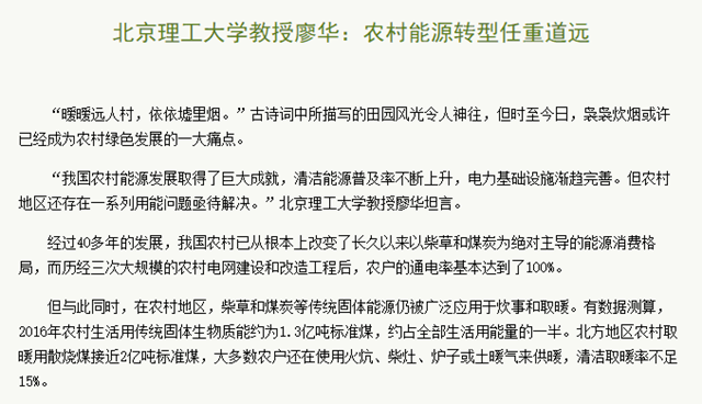 原文标题:北京理工大学教授廖华:农村能源转型任重道远