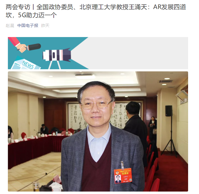 【两会▪中国电子报】王涌天委员:AR发展四道坎,5G助力迈一个