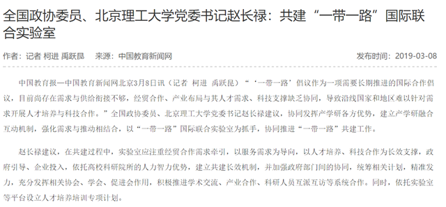 原文标题:全国政协委员、北京理工大学党委书记赵长禄:共建“一带一路”国际联合实验室