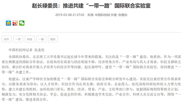 原文标题:赵长禄委员:推进共建“一带一路”国际联合实验室