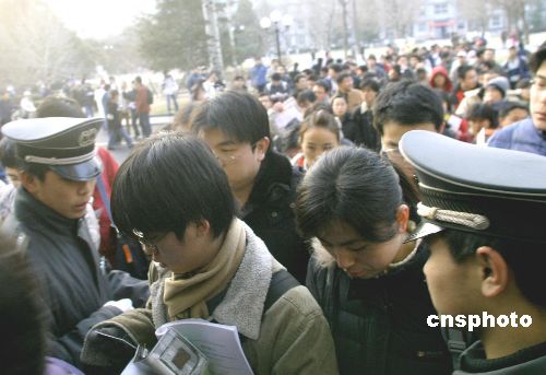 图为一月十四日上午北京理工大学考点的考生们有序步入考场参加考试。 作者:张勤