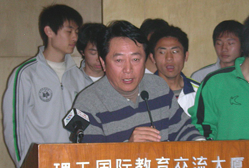 新浪体育讯 2007年2月15日下午,北京理工大学足球队在学校召开了团拜会,学校校长杨宾以及球队主帅金志扬介绍了球队备战中甲情况,并且通过团拜会向各界支持球队的人士表达新年祝福。图为金志扬做冬训汇报。(智斌)