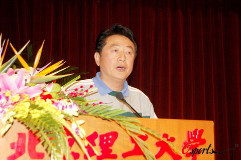 新浪体育讯 2006年12月15日,北京理工大学足球队冲甲成功总结表彰大会在校内中教一层报告厅举行,中国足协副主席南勇等各级领导出席表彰大会。学校决定,对北京理工大学足球队进行通报嘉奖,并给予总计40万元的奖学金、奖教金的物质奖励,各级领导和金志扬总教练、队员代表等发言。明年北京理工大学足球队将继续征战在中甲的主战场,其如何亮相及表现如何将成为足球界和各大媒体的焦点。图为金志杨在会上发言。