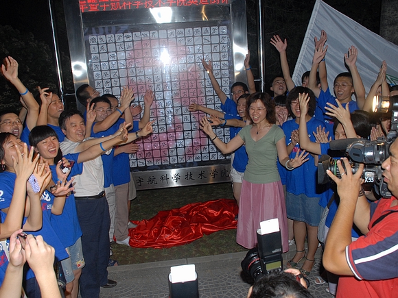 本报讯 8月8日晚上8时,北京理工大学召开“北京理工大学欢庆2008奥运会倒计时一周年暨宇航科学技术学院奥运倒计时牌揭牌仪式”。此倒计时牌集倒计时、新闻发布、动感灯箱为一体,具有多种功能。(段炼 摄)