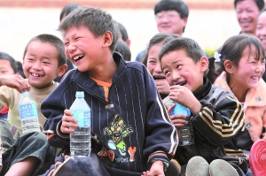 北京理工大学师生为曲靖市的9所学校捐送9.5万瓶饮用水。这使马鸣乡瓦窑小学学生喝上了来自北京的“爱心水”。