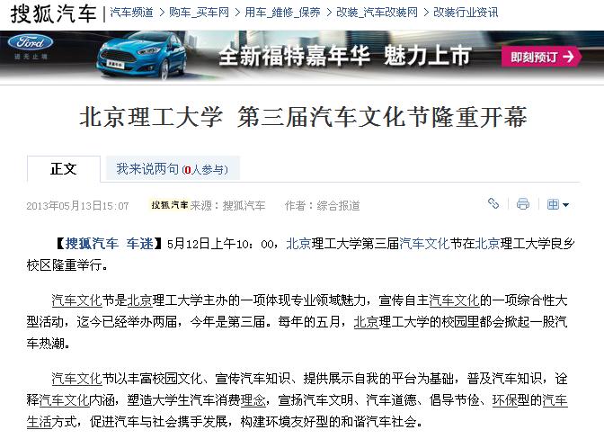 【搜狐汽车】北京理工大学第三届汽车文化节隆重开幕