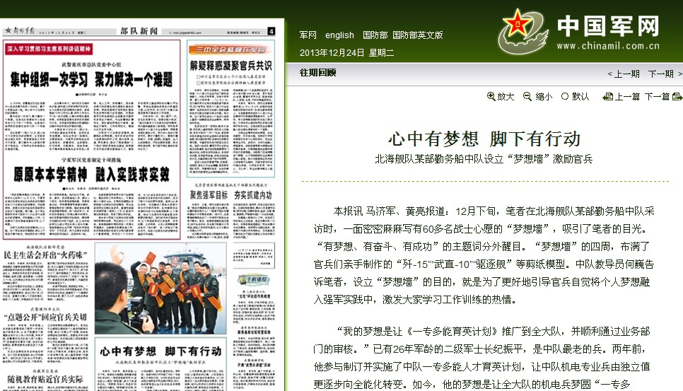 发布日期:2013-12-25 供稿:中国军网 编辑:党委宣传部 赵琳 阅读次数: