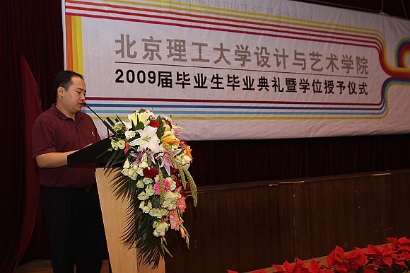 2009年6月25日上午,设计与艺术学院在七号楼报告厅隆重举行了2009届毕业生毕业典礼。学院党委书记杨海滨老师、副院长杨建明老师、党委副书记副院长丛磊老师以及全体2009届本科生和研究生毕业生参加了毕业典礼,大会由分团委武靖宇老师主持。