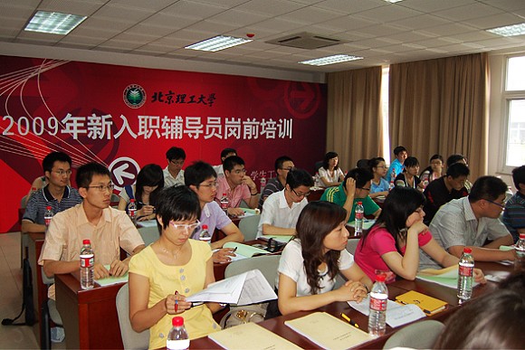 2009年7月7日上午9点,我校学生工作处主办的北京理工大学首届辅导员入职培训在研究生楼110 如期举行。本次培训是结合学生工作实际需要,对新入职辅导员开展的学生教育与管理、学生自主、心理发展与辅导等相关知识技能培训,帮助辅导员了解、掌握学生工作的基本理念,并能运用于实际工作。本次培训为期4天,涉及辅导员工作经验交流、心理疾病预防与危机感与处理、与学生沟通的基本态度与技巧、“大学生辅导实务”培训、辅导员深度心理健康访谈专题培训等内容。