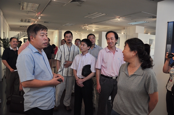 揭幕仪式结束后,领导和同学们一起参观了艺术馆,过程中设计与艺术学院的老师对馆内作品进行了讲解,领导们给予了相应评价,同时对艺术馆的未来发展提出了建议,希望通过大家的努力将艺术馆越办越好。