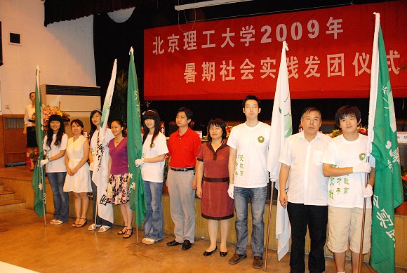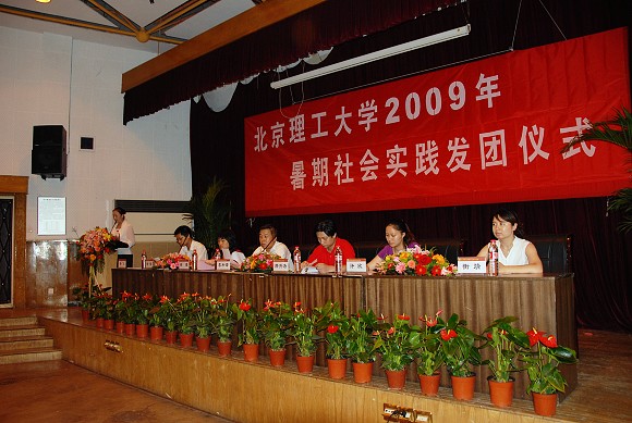 2009年7月16日下午3:00,由校团委主办的北京理工大学2009年暑期社会实践发团仪式在七号教学楼一层报告厅隆重举行。北京理工大学副校长李和章,研究生工作部部长郝洪涛,教务处副处长徐瑾,学生工作处副处长许欣,校团委书记徐强,校团委副书记衡靖,出席了本次发团仪式。参加会议的还有各学院分团委书记、研工委书记,以及参加本次暑期社会实践的近300名师生。发团仪式由校团委实践部部长孙飞主持。