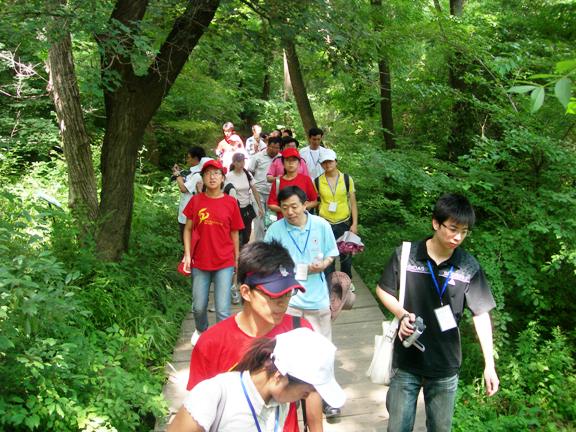 2009年7月26日,生命学院大学生生态科考社会实践活动迎来了本次活动的核心考察地点,那就是“沙漠绿洲”——大青沟。大青沟位于通辽市科左后旗境内,距市区80公里,处于科尔沁沙地中间,是茫茫沙海中的一条南北走向的绿色深谷,全长24公里,作为国家级自然保护区,它拥有保存完好的古代残遗森林植物群落,总面积12.5万亩。