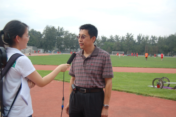 在交流中各大媒体来到我校节能车工作室参观,在此详细的了解了同学们的工作情况,及此次比赛我校的方案设计及方案实施细节,媒体对我校节能车给予了高度评价。最后此次活动全体成员来到操场,探望我校节能车队队员的试车实况,张幽彤教授和学生代表刘向接受了北京电视台的采访。
