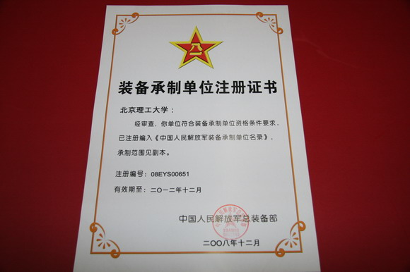 2009年8月24日,总装备部召开装备承制单位资格审查工作会议,总结2008年以来审查工作开展情况,并向2008年通过现场审查的单位颁发证书及牌匾。我校杨树兴副校长参加此次会议并代表学校领取证书及牌匾,经总装备部认定,我校自2008年12月起,正式进入《中国人民解放军装备承制单位名录》。
