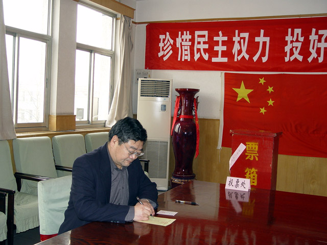 党委书记焦文俊同志在填写选票