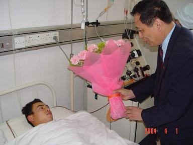 国家管理中刘静湖副主任代表“中华骨髓库”慰问采集中的昌桂华