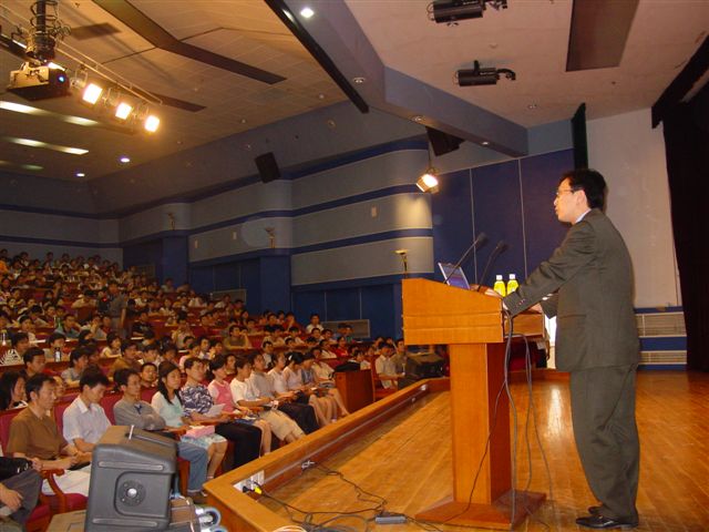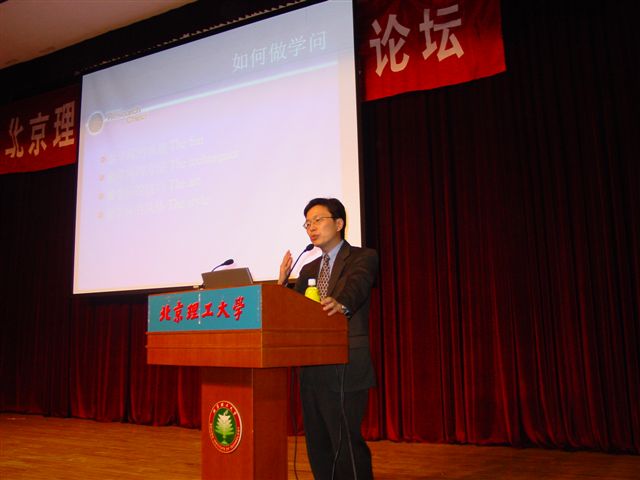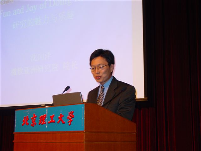 2004年6月4日星期四下午,容纳500人的我校中心教学楼一层报告厅座无虚席,走廊和过道上也挤满了热情的同学,微软亚洲研究院院长兼首席科学家沈向洋博士应邀在这里做主题为“科学研究的魅力与乐趣”的演讲。