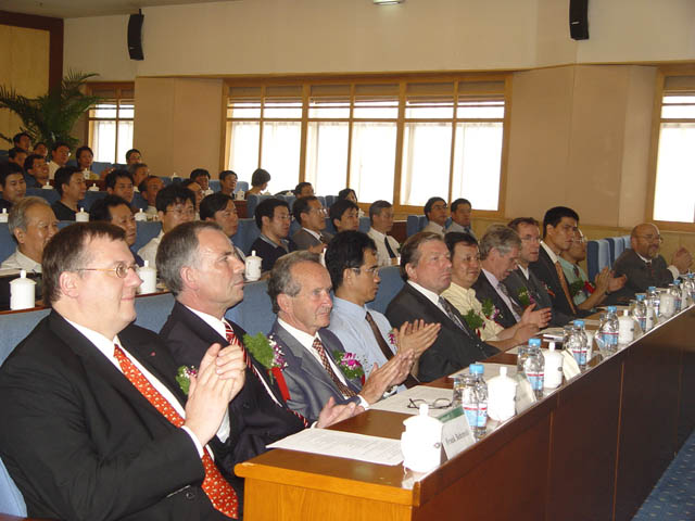 柏林工业大学校长Kutzler教授、我校党委书记焦文俊教授、校长匡镜明教授等在主席台就坐。