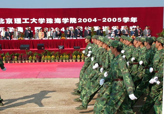 10月30日上午,北京理工大学珠海学院在学院田径场隆重举行2004级新生开学典礼暨军训阅兵式。国防科工委副秘书长胡亚枫,珠海市委书记方璇,北京理工大学党委书记焦文俊、校长匡镜明,市委副书记魏宏广, 珠海市人大副主任余荣蔼,珠海市副市长邓群芳,珠海警备区副司令张文裕,广东省发展改革委员会社会发展处处长周灵等领导出席了典礼。