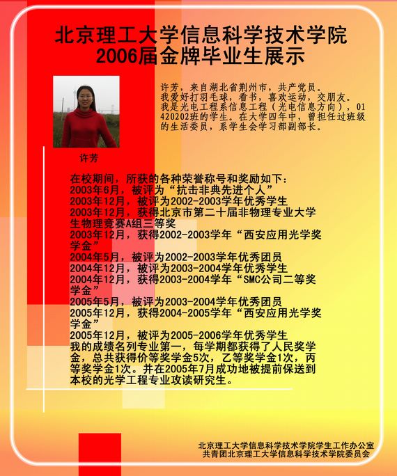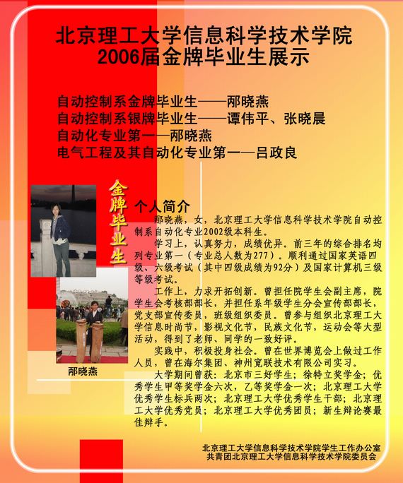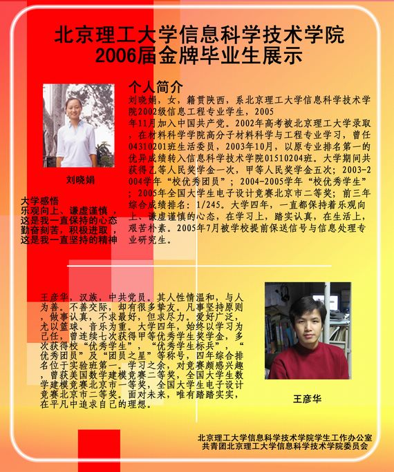 【图】信息科学技术学院2006届“金牌毕业生”系列展示