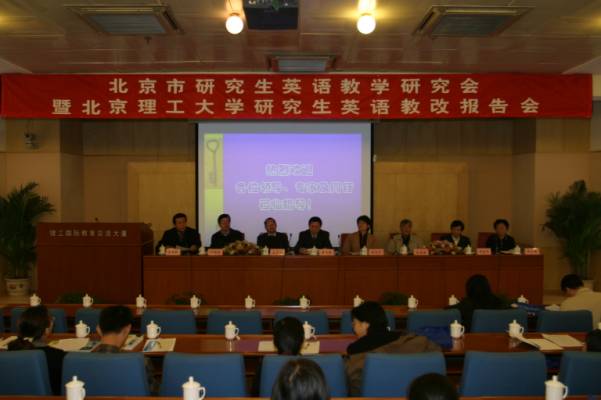 2004年10月30日,时逢北京理工大学研究生院建院二十周年之际,北京市研究生英语教学研究会暨北京理工大学研究生英语教改报告会在北京理工大学国际教育交流大厦三层学术报告厅隆重举行。出席会议的有我校研究生院梅文博副院长,研究生培养办公室主任王庆林、副主任林海,各学院主管研究生教育的副院长和人文社会科学学院的教师,来自北京、河北贵州的36所高校和研究机构的84位从事英语教学的专家和教师代表参加了会议。