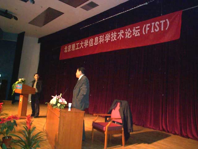 做为向研究生院建院二十周年华诞献礼的重要内容之一,由共青团北京理工大学信息科学技术学院研工委和研究生会经过长期筹备共同创建的信息科学技术论坛FIST(Forum of Information Science Technology)启动仪式暨王越院士报告会于11月29日19:00在中教一层报告厅隆重召开。本论坛隶属于北京理工大学信息科学技术学院,由论坛学术委员会和执行委员会组成,接受学院的指导和监督。本论坛旨在服务广大师生,营造一个良好的学术交流的氛围。论坛的启动仪式由信息学院院长吕昕教授主持,研究生院副院长梅文博老师,学生工作处处长刘明奇老师,校团委书记张启鸿老师,招生就业工作处副处长郭宏老师,信息学院主管研究生工作的副书记、副院长张笈老师等领导出席了启动仪式,同时有近500名研究生同学参加了论坛开幕式。