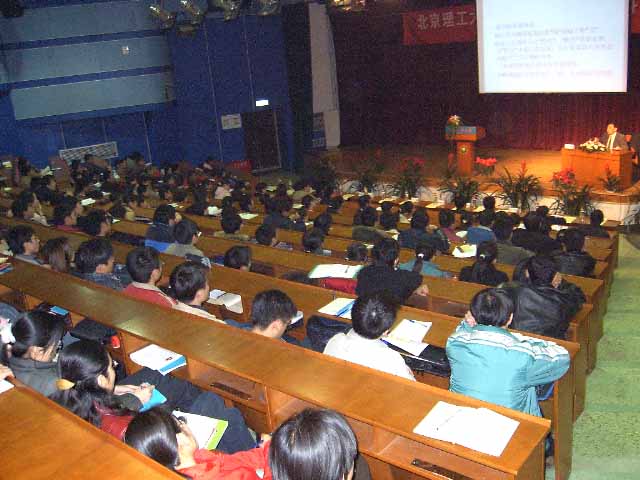 吕院长宣布论坛正式启动后,由中国工程学院和中国科学院的王越院士作了首场报告,就“中国发展与大学任务讨论”这一话题作了长达三个小时之久的精彩报告。王越院士在报告中指出:在“科教兴国”方针指导下,大学承担着艰巨长期持续发展的任务,个人发展离不开社会大环境的影响,而“文化”则是社会的综合和核心表征,中国人民理应在世界文化发展中多做一点贡献。王越院士以长者的身份用严肃而又不失幽默的语调谈到了对当代大学生的希望和忠告,告诫新时期的大学生应该做到知彼知己,百战不殆,把握机遇迎接挑战,勇敢的去创新。